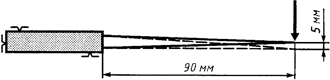 9.5.1. При длине клинка ножа для выживания 90 мм его боевой конец (острие) отгибают на 5 мм. С увеличением длины клинка на каждые 25 мм величину отгиба увеличивают на 2 мм. После испытания на клинке не должно быть остаточных деформаций, превышающих 1 мм.