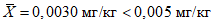 x1 = 0,003 x2 = 0,004 | | | | | 0,005 | Молоко сухое цельное соответствует СанПиН 2.3.2.1078-2001 по содержанию в нем ртути, т.к. 0,0028 < 0,005 мг/кг и 28,6% < r = 30% |