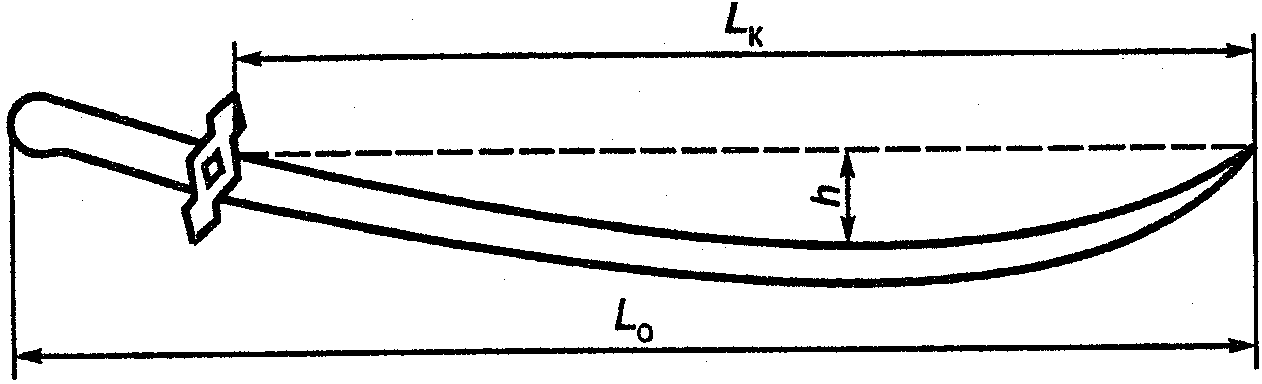 Примечание. Длину сильно изогнутого клинка (общая длина оружия) определяют по длине отрезка прямой, проведенной от острия клинка до верхней точки пяты (крайней точки рукояти).