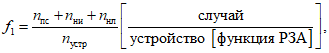 1) усредненное число срабатываний устройств РЗА или функций РЗА, реализованных в устройствах РЗА, f1 определяют по формуле