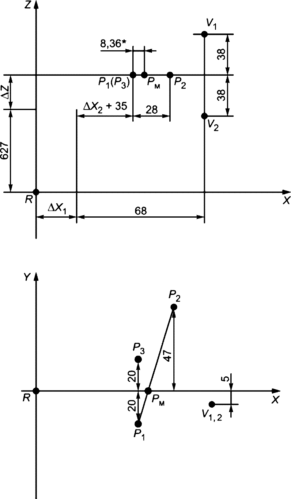 Рисунок Б.3 - Определение координат точек V и P