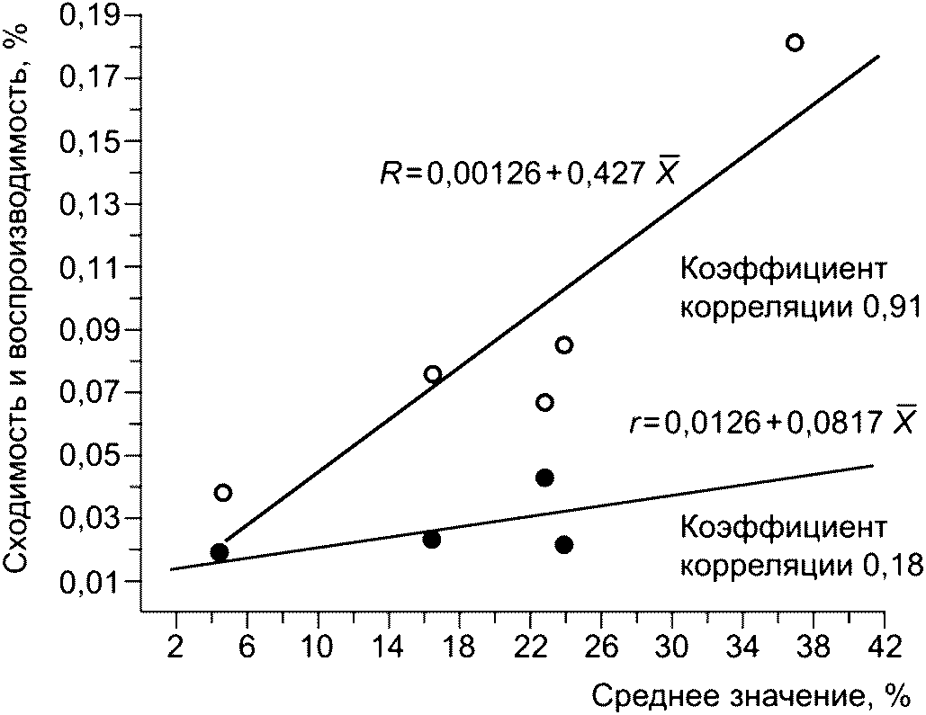 Рисунок 1 - Зависимость сходимости и воспроизводимости