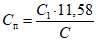 Cп - приведенная емкость ячейки с пеком, рассчитанная в соответствии с