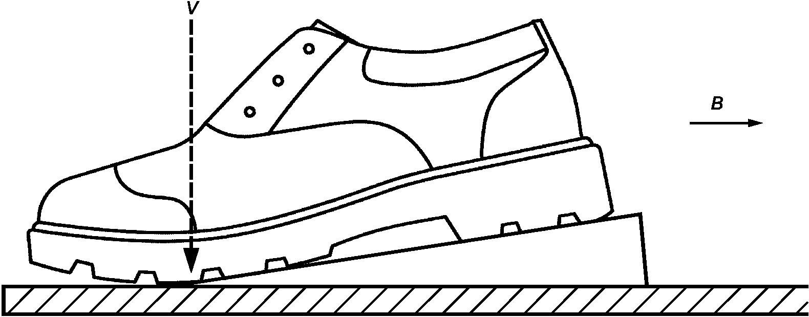 разделе 6, для скольжения передней части каблука при угловом контакте, применяя нормальную силу 500 Н.