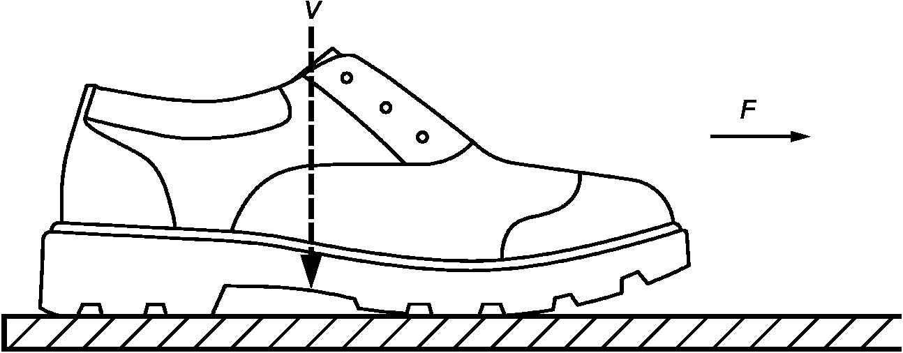 3.2 сила трения (fractional force): Сила, возникающая при скольжении обуви по поверхности и направленная параллельно поверхности против направления движения.