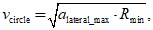 vcircle_start = min[(alateral_max·R)1/2, vvehicle_max] +/- 1 м/с,