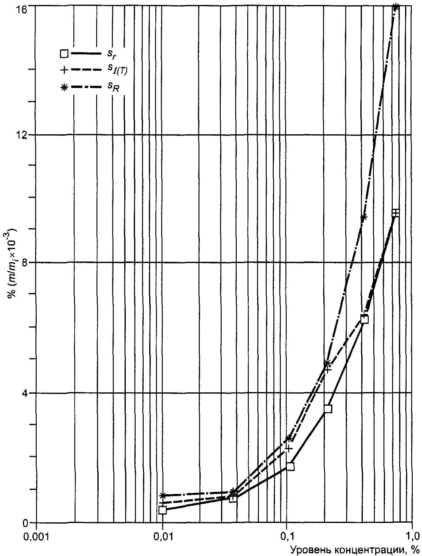 Значения этих стандартных отклонений для всех шести уровней содержания ванадия сведены в таблицу D.5 и представлены на