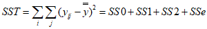 Из этих значений получены суммы квадратов SS0, SS1 и SSe и сведены в таблицу ANOVA (см. таблицу D.4).