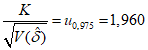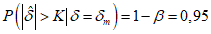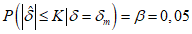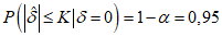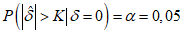 K может быть вычислена, используя требование, что вероятность отклонения гипотезы