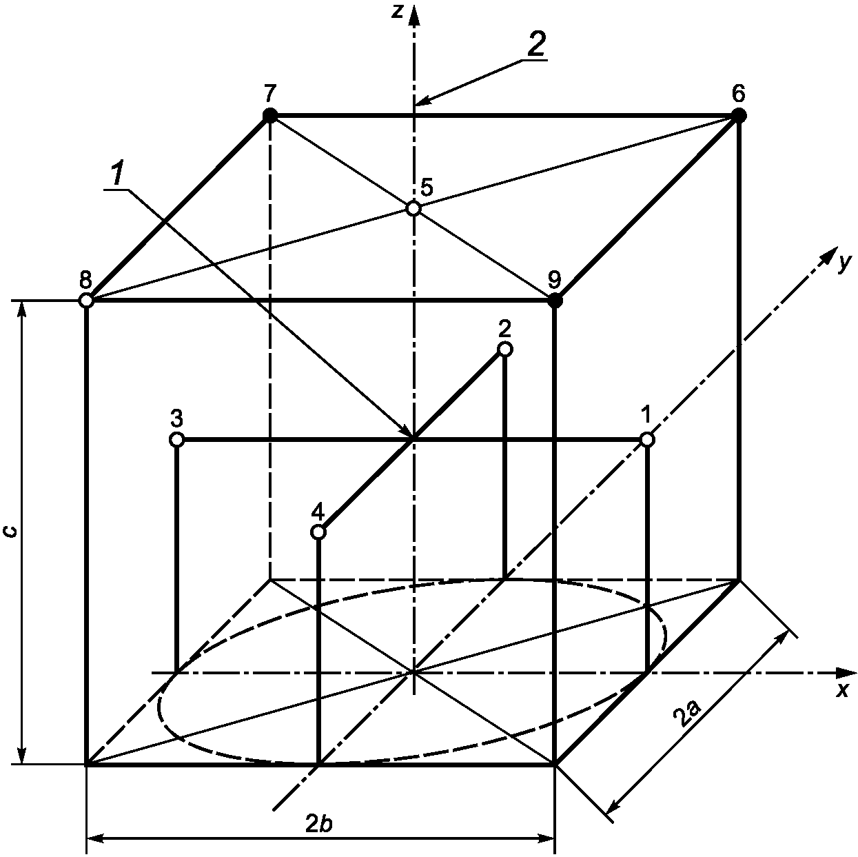 Примечание 1 - У ручных приборов, а также у изделий, устанавливаемых на подвесе или специальной стойке (подставке), акустический центр совпадает с геометрическим центром огибающего параллелепипеда, включающего в себя основную часть испытуемого изделия.