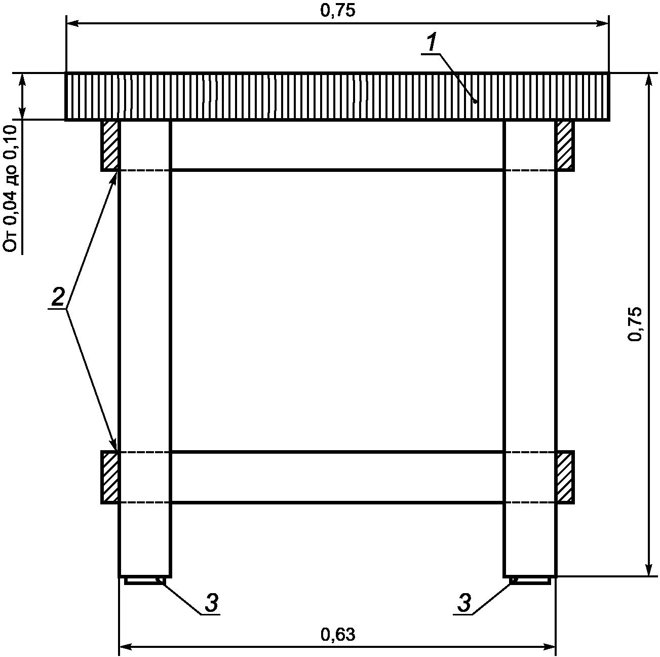 рисунке A.1. Верхняя поверхность стола должна быть изготовлена из многослойной фанеры толщиной до 0,10 м. Площадь поверхности стола должна быть не менее 0,5 м