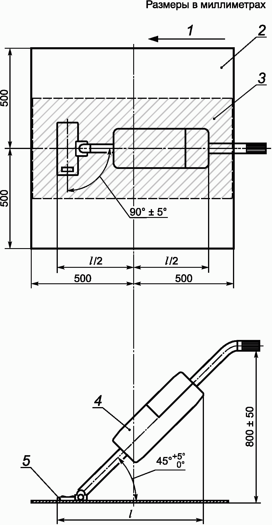 Вертикальная проекция испытуемого изделия и его чистящая головка должны находиться в центре участка испытаний (см.