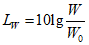 3.1 уровень звуковой мощности LW (sound power level): Десятикратный десятичный логарифм отношения звуковой мощности W к опорной звуковой мощности W0 (W0 = 1 пВт), выраженный в децибелах