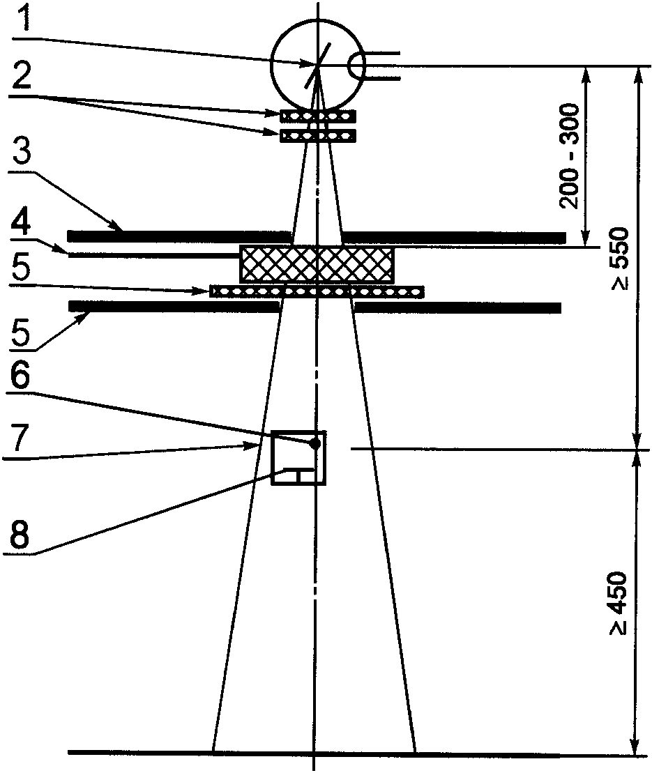 В соответствии с требованиями настоящего стандарта необходимые УСЛОВИЯ ИЗЛУЧЕНИЯ создаются с помощью ДОПОЛНИТЕЛЬНЫХ ФИЛЬТРОВ или ФАНТОМОВ и установкой АНОДНОГО НАПРЯЖЕНИЯ в диапазоне от 30 до 150 кВ. УСЛОВИЕ ИЗЛУЧЕНИЯ при АНОДНОМ НАПРЯЖЕНИИ порядка 30 кВ определено в