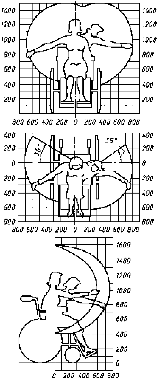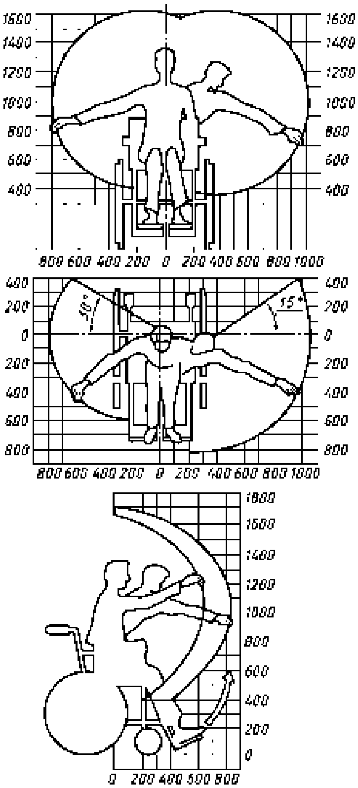 Рисунок 1 - Зоны досягаемости для мужчин в кресле-коляске