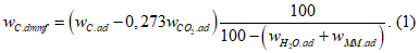 ГОСТ 2408.4). Чтобы пересчитать полученный результат с аналитического на сухое без минеральной массы состояние, следует из общего углерода вычесть углерод карбонатов, как показано в формуле: