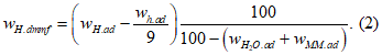 , из определяемой экспериментально величины вычитают водород влаги аналитической пробы. При пересчете содержания водорода на сухое без минеральной массы состояние из величины