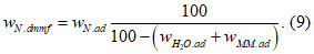 Поскольку азот не содержится в минеральной массе топлива, пересчет содержания азота (см. ГОСТ 28743) с аналитического на сухое без минеральной массы состояние производят по формуле: