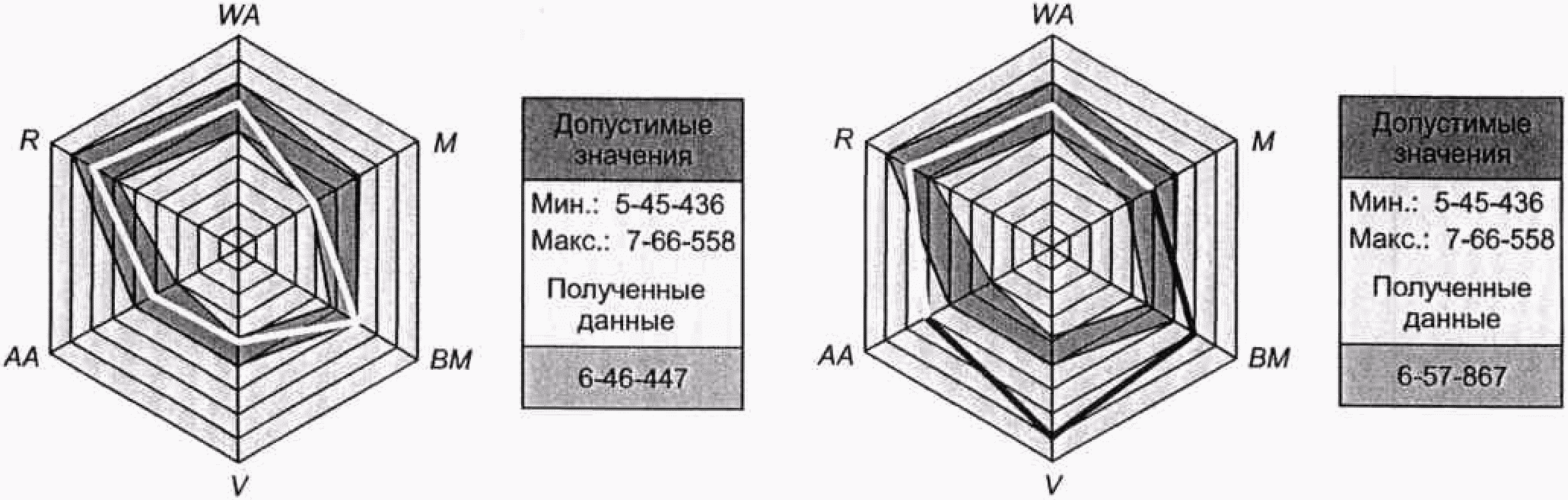 В.1. Примеры радиальной диаграммы приведены на рисунке В.1.