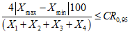 - значение относительной расширенной неопределенности содержания i-го аналита для соответствующего диапазона измерений (