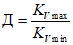 3.1.4. диапазон регулирования фактический Д: Отношение максимального значения пропускной способности KVmax к минимальному значению пропускной способности KVmin, в пределах которых сохраняется вид пропускной характеристики конкретного образца РА.