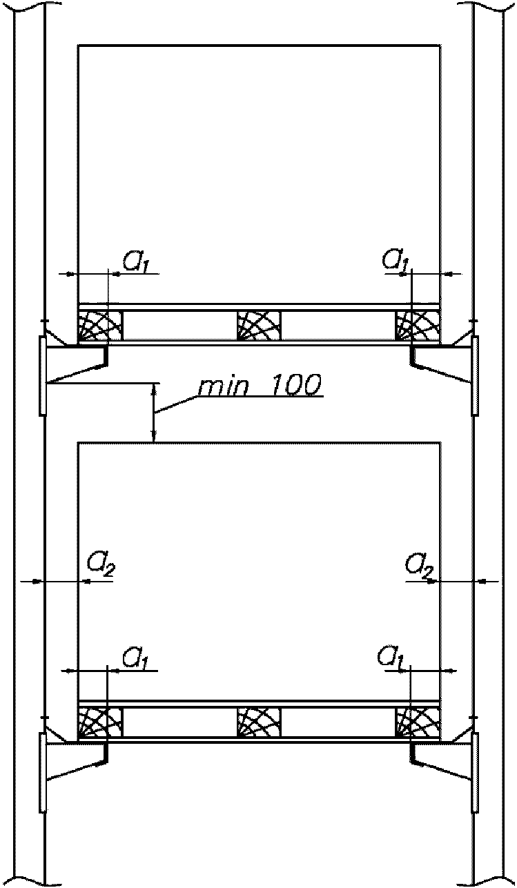 3.18. Межрамная связь: элемент, соединяющий два соседних одиночных ряда стеллажей (расположен не над рабочим коридором).