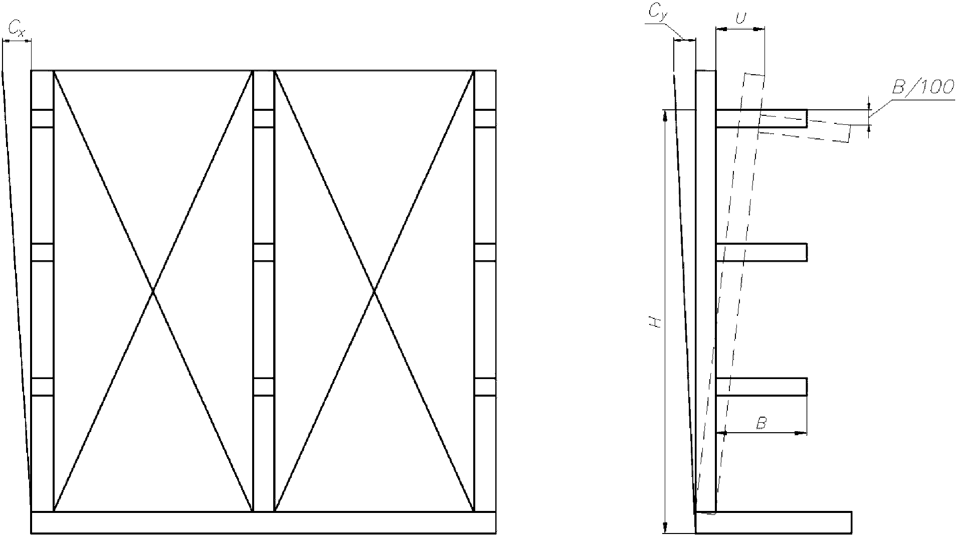 Неперпендикулярность стоек стеллажа к вертикальной плоскости | Z | |