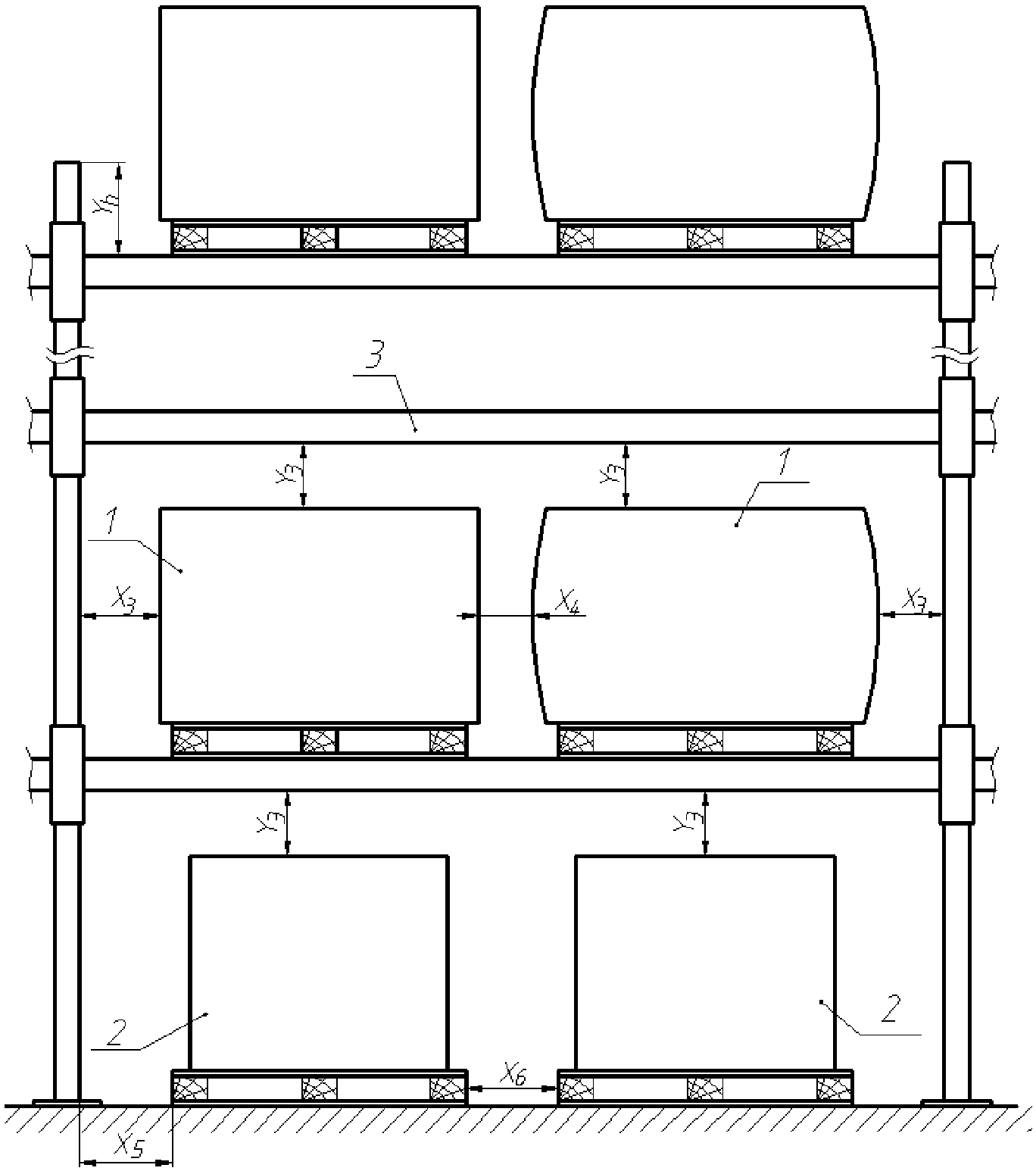 3.23. Уровень хранения: место для хранения грузов на одном уровне от опорной поверхности, например пара балок, полка, ряд консолей и т.п.