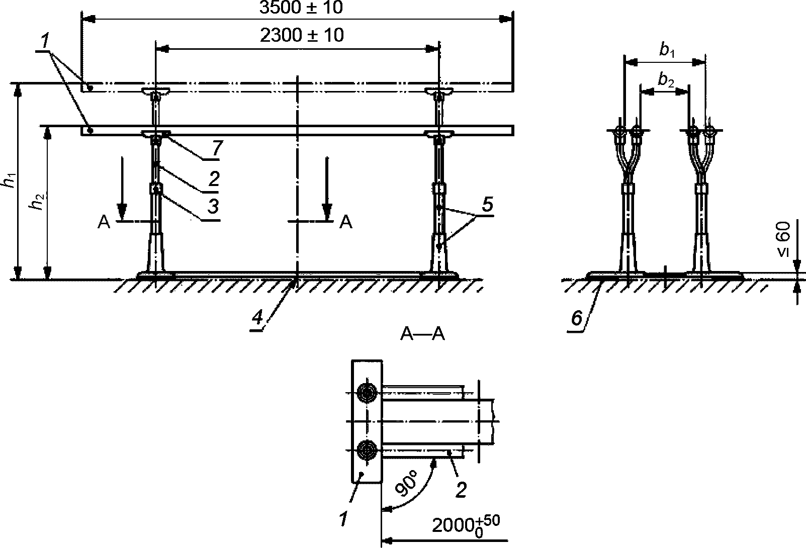 2.1.2 Конструкция и размеры параллельных брусьев и комбинированных асимметричных/параллельных брусьев приведены на