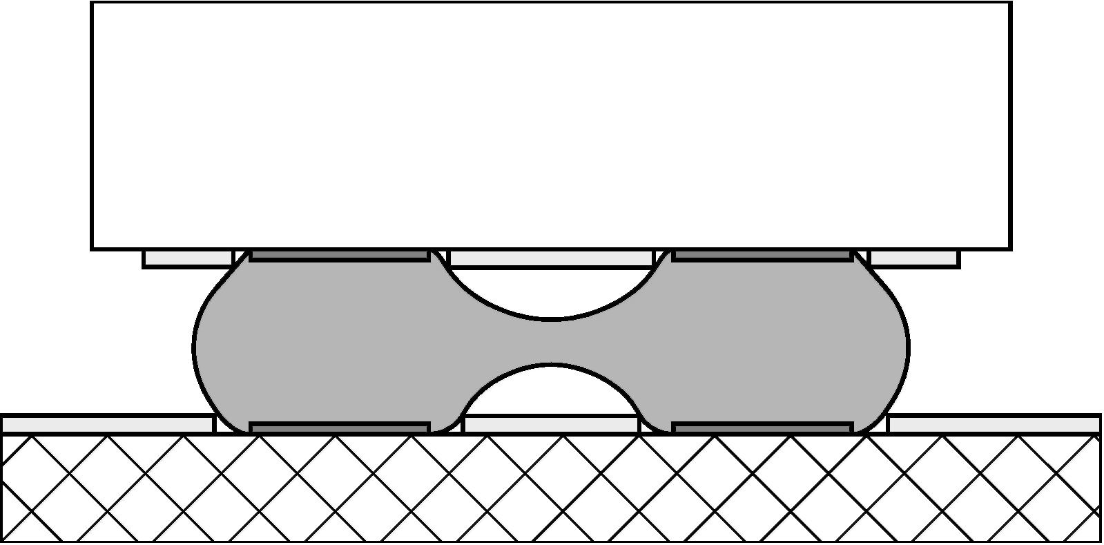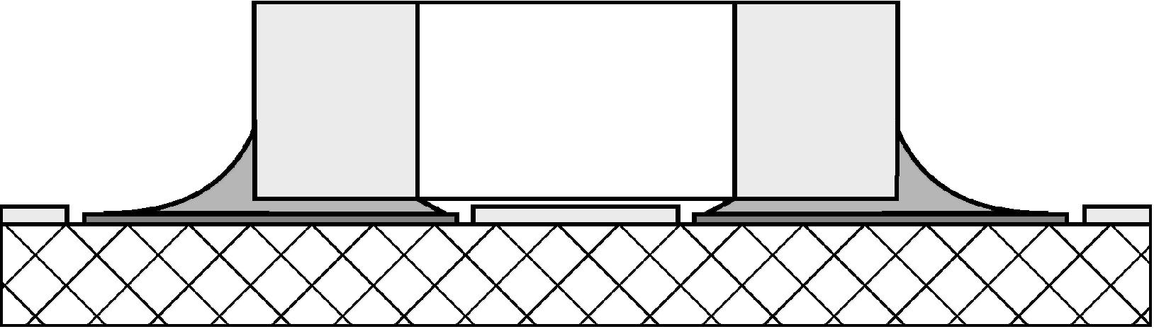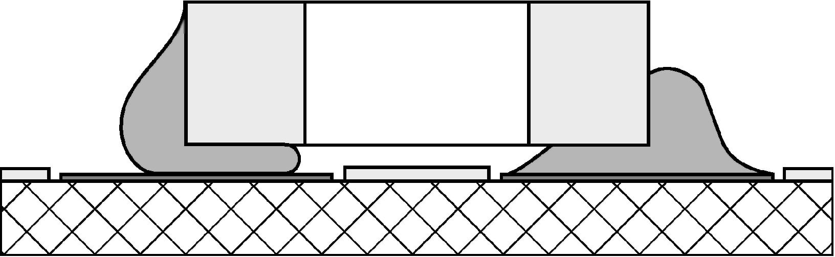 9.3.7.1 С целью повышения надежности паяных соединений для изделий РЭС классов B и C необходимо закладывать максимальную высоту ПС за счет выбора толщины трафарета с учетом вышеописанных правил по