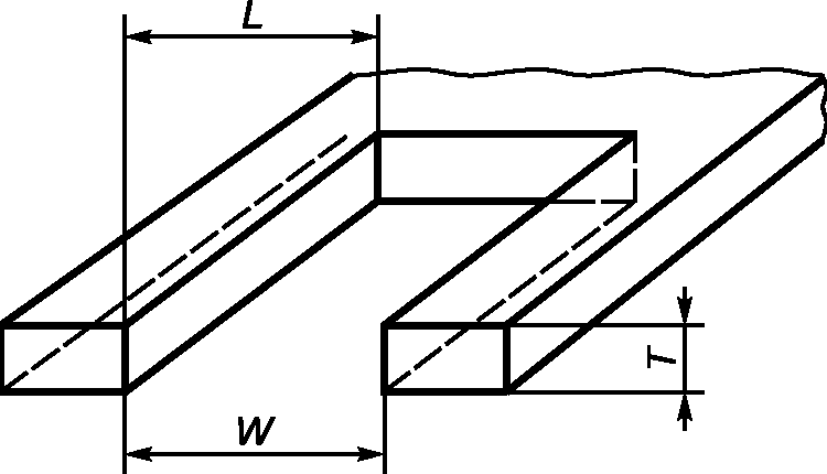 L - ширина апертуры в трафарете, мм; P - ширина контактных