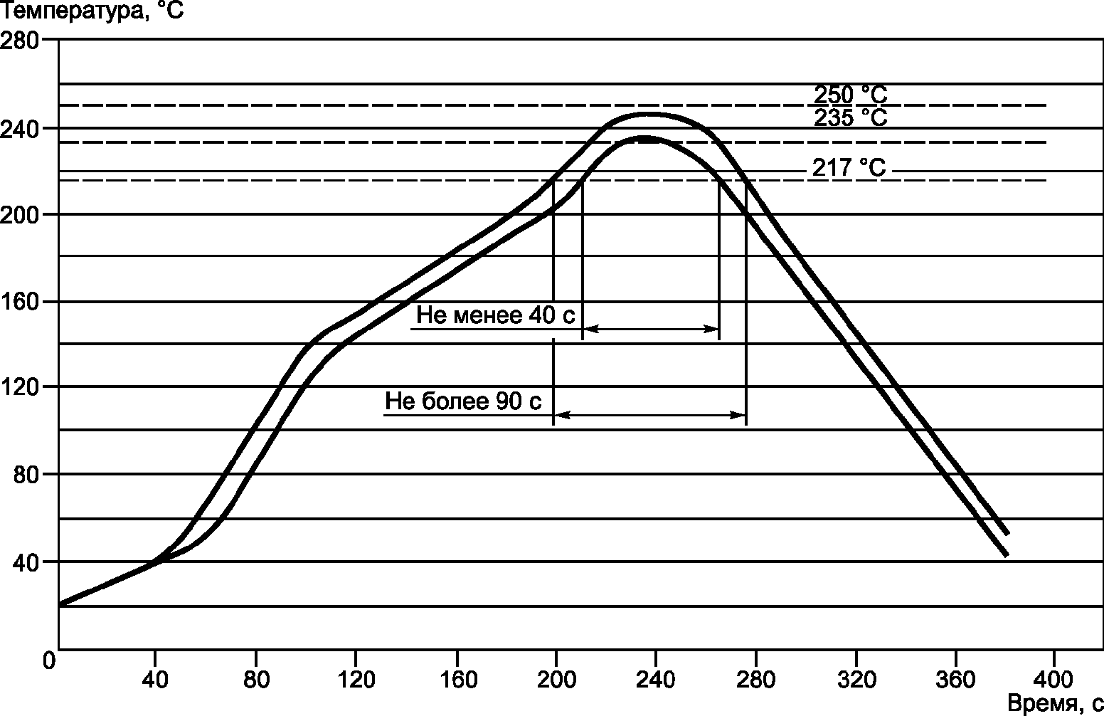 При отсутствии информации о профиле оплавления применяемой бессвинцовой припойной пасты должен использоваться профиль, приведенный на