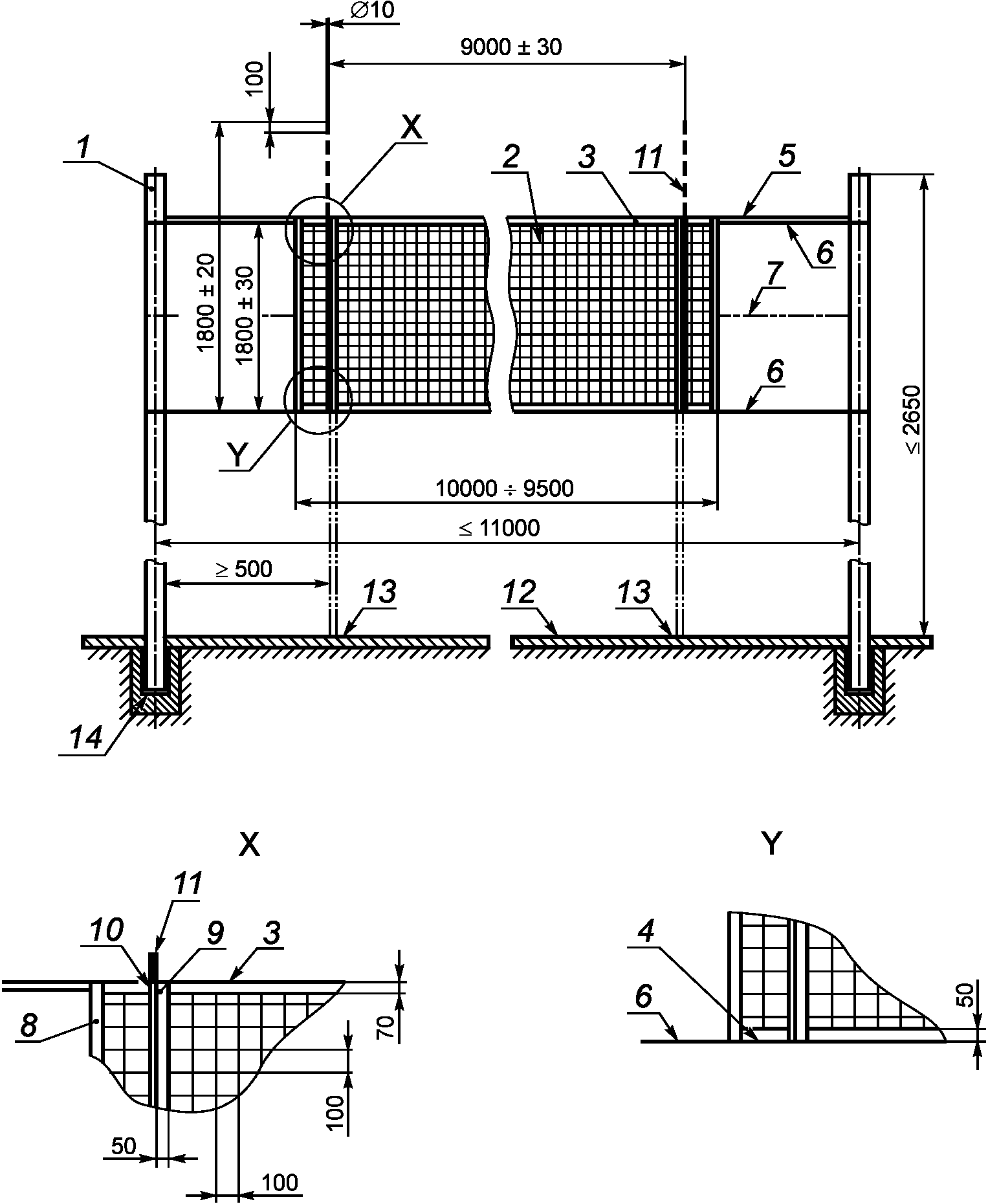 Рисунок 1 - Конструкции и размеры волейбольного оборудования