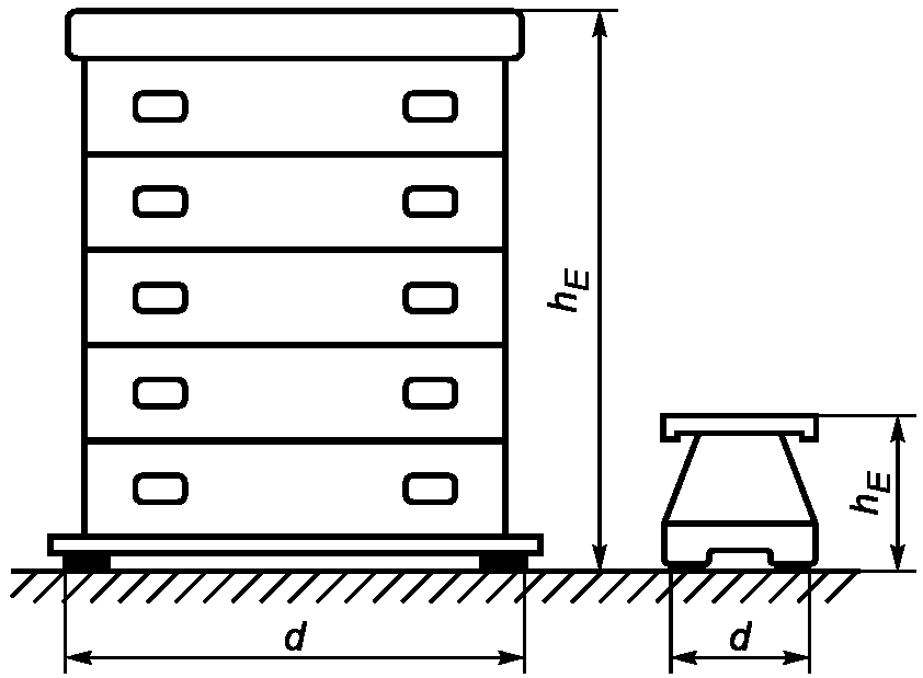 d - базовая ширина контакта с полом в направлении приложения испытательной нагрузки (см.