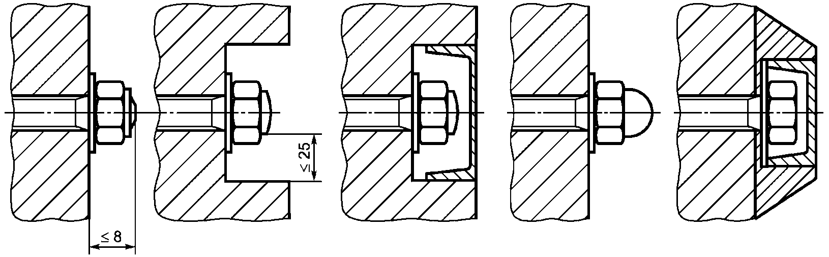 5.1.5 Оборудование должно иметь защиту концов болтовых соединений, выступающих более чем на 8 мм за пределы поверхности оборудования.