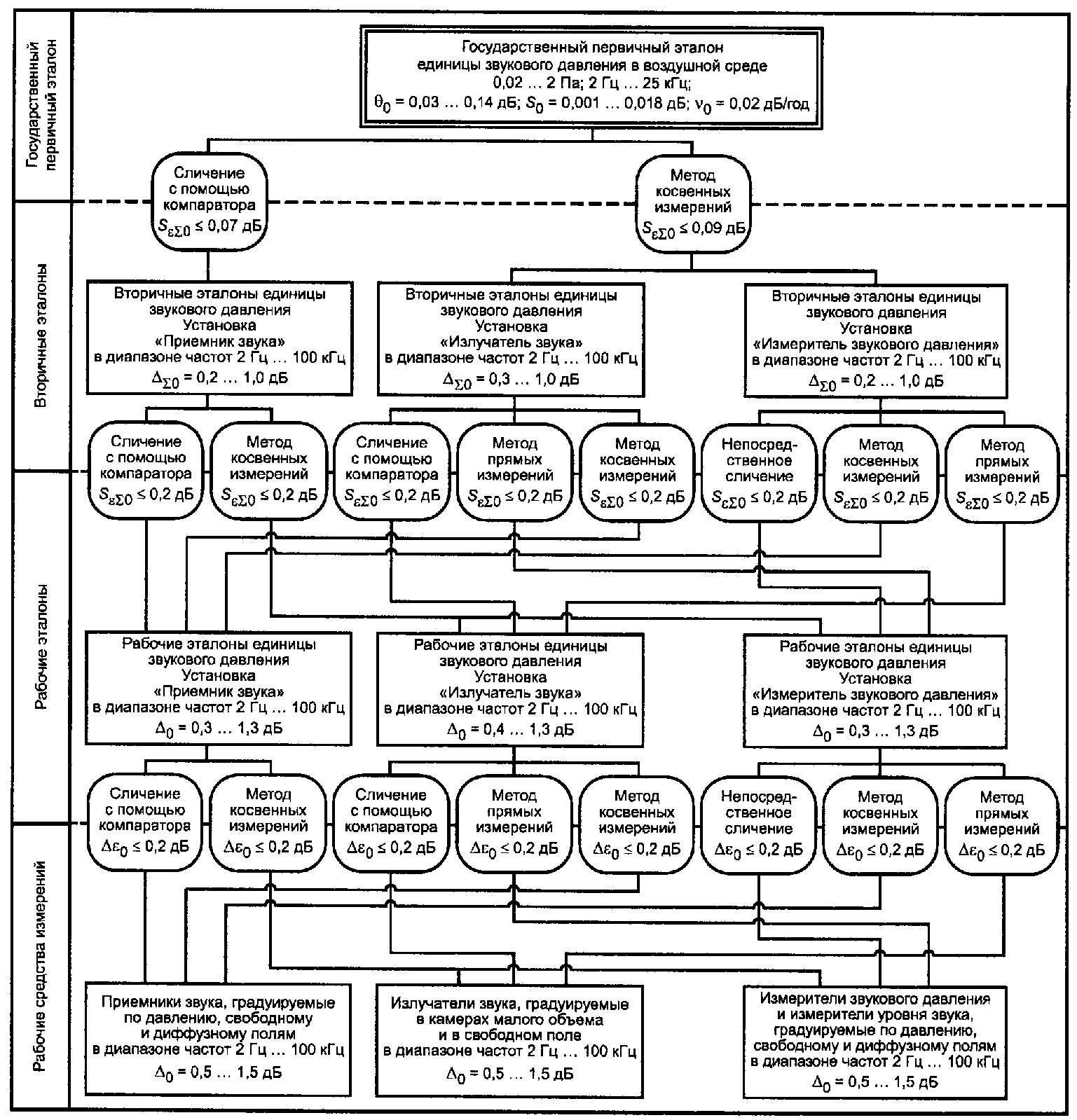 метода и средств передачи единицы звукового давления рабочим эталонам и при необходимости высокоточным рабочим средствам измерений, определяемый по