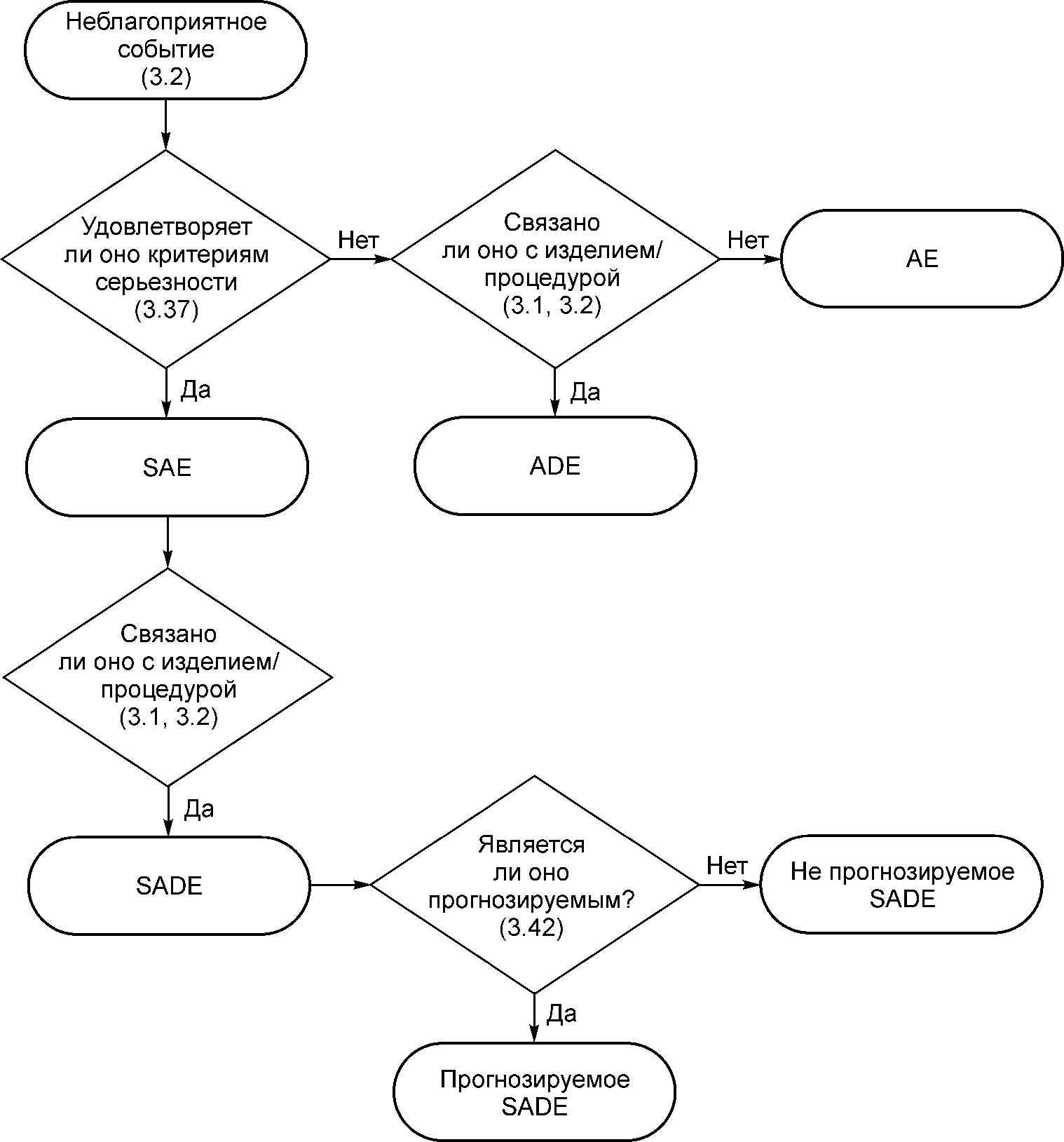 3.2 неблагоприятное (нежелательное) событие; AE (adverse event; AE): Любое нежелательное медицинское проявление, непредвиденное заболевание или травма, а также нежелательные клинические признаки, включая отклонение лабораторных показателей от нормы у субъекта, пользователя или любого другого лица, которое может быть и не связанным с исследуемым медицинским изделием.