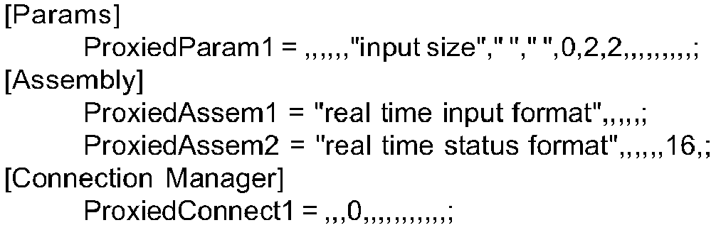 В частности, настоящий стандарт описывает специфические для технологии шаблоны профилей для профилей устройств и профилей сетей коммуникаций. В рамках AIP вариант профиля устройства или вариант профиля сети коммуникаций является частью профиля ресурсов, определенного в ИСО 15745-1. Варианты файлов XML профиля устройства и профиля сети коммуникаций включены в вариант XML профиля ресурсов с использованием ProfileHandle_DataType согласно определениям в ИСО 15745-1:2003, пункт 7.2.5.