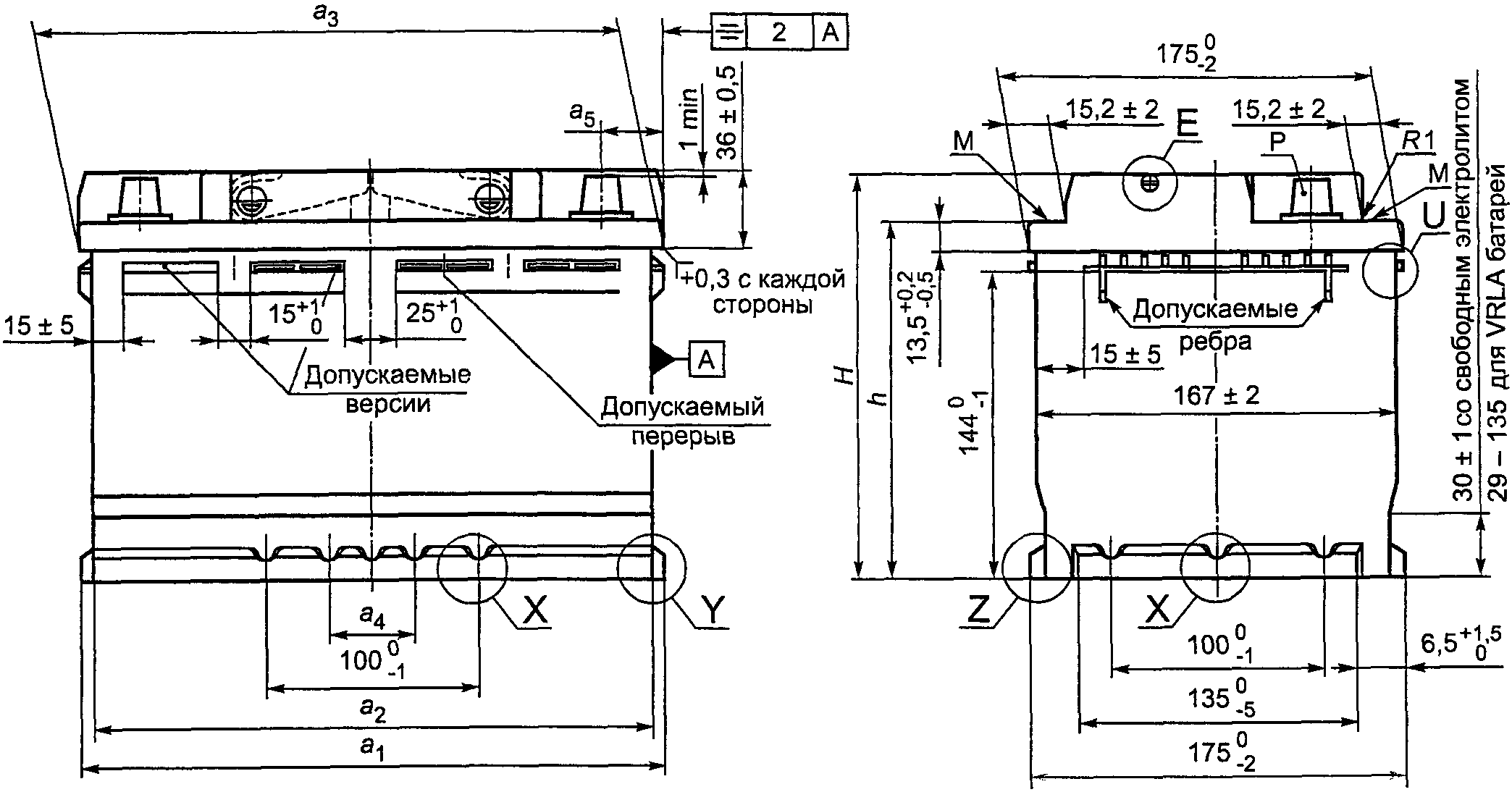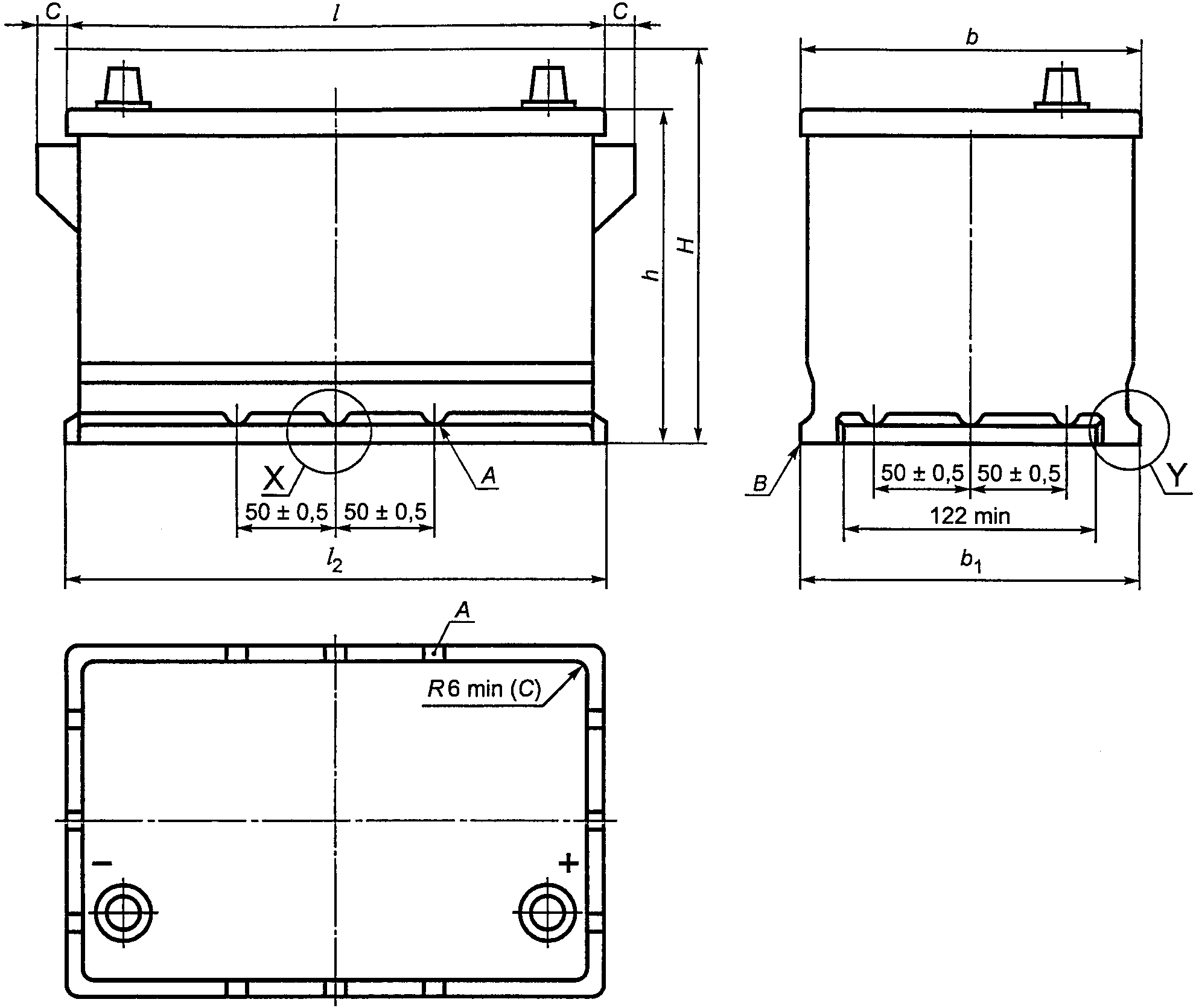 "ГОСТ Р МЭК 60095-2-2010. Национальный стандарт Российской Федерации. Батареи стартерные свинцово-кислотные. Часть 2. Размеры батарей и размеры и маркировка выводов"