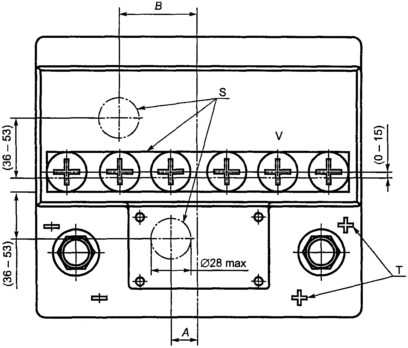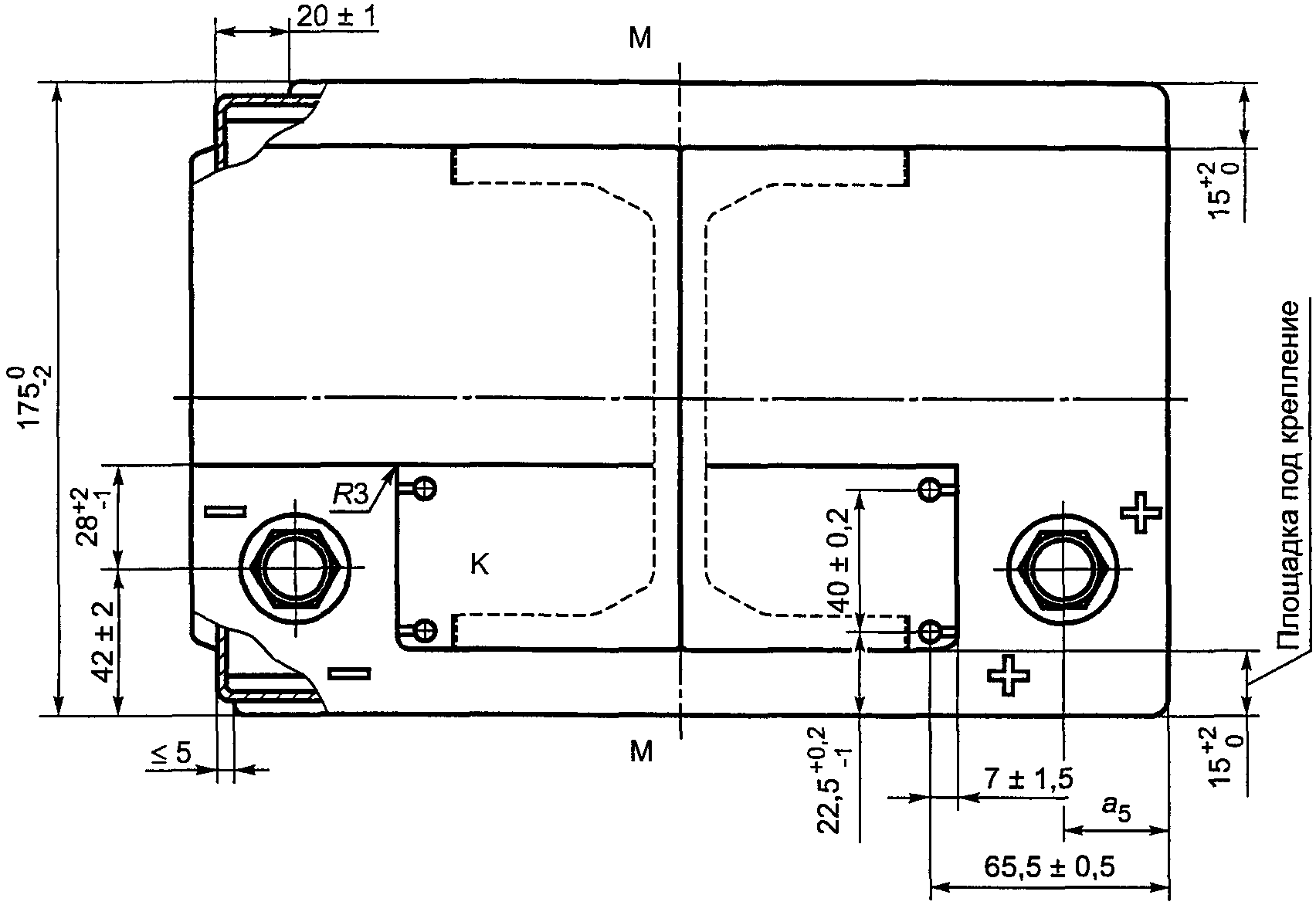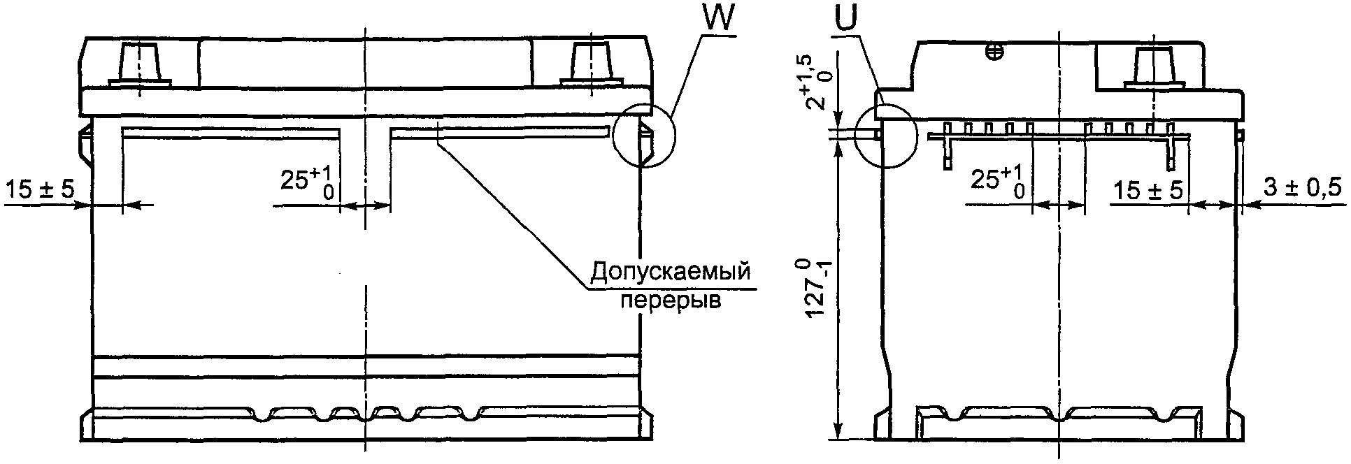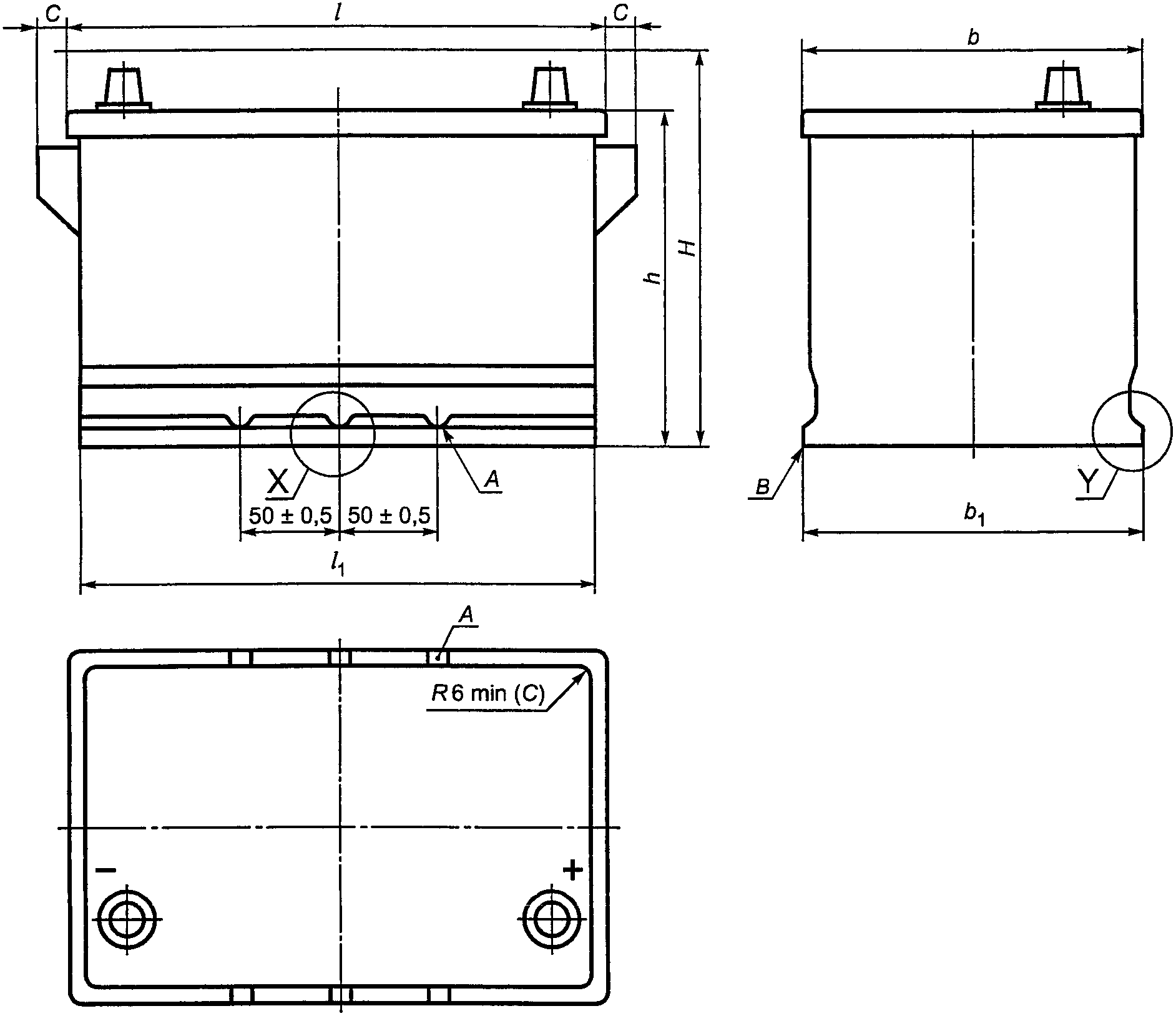 Маркировка отрицательной полярности должна иметь символ "-" или на верхней поверхности отрицательного вывода, или на крышке рядом с отрицательным выводом.