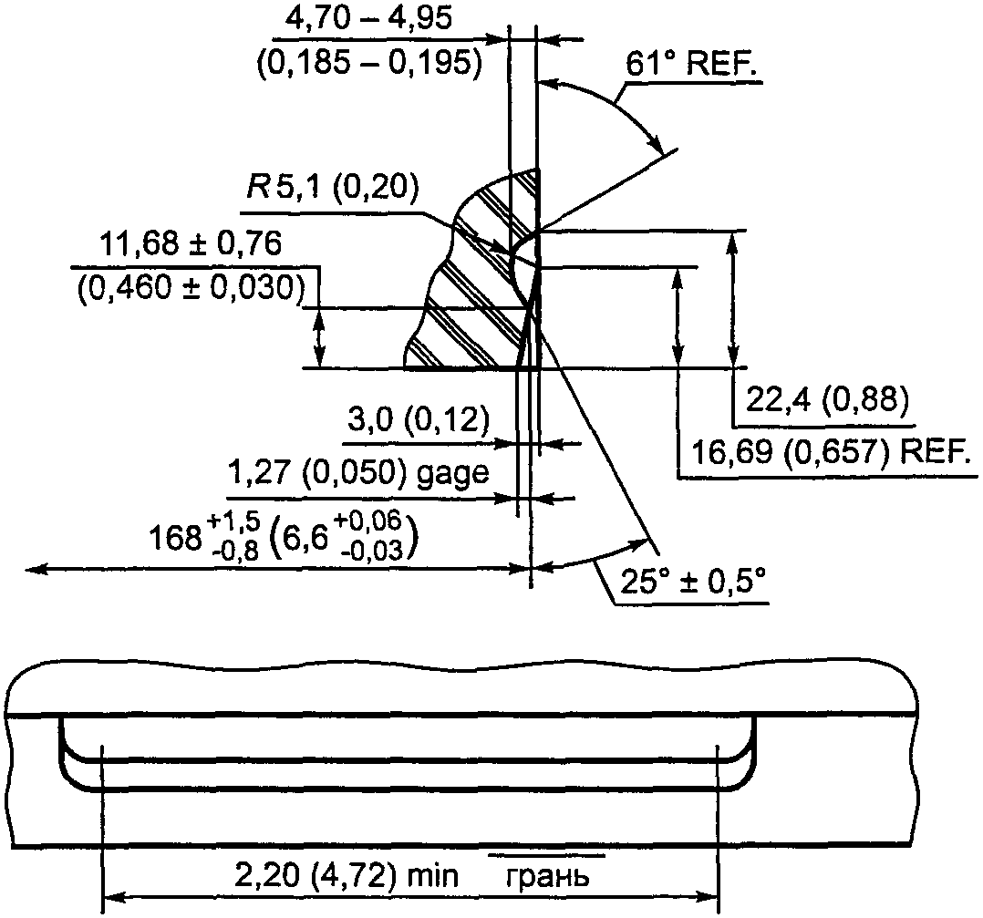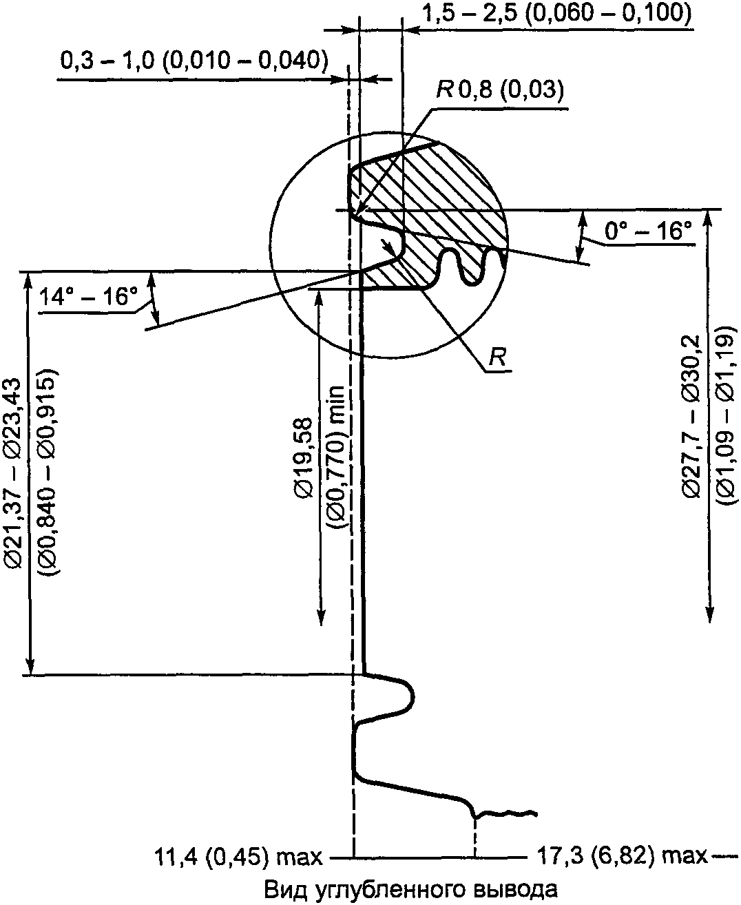 Рисунок 27a. Деталь X - Выемки, размеры для всех серий