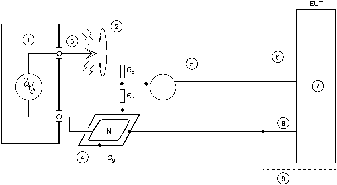 Наиболее критическим испытанием является применение общего режима ВЧ напряжения, как показано на