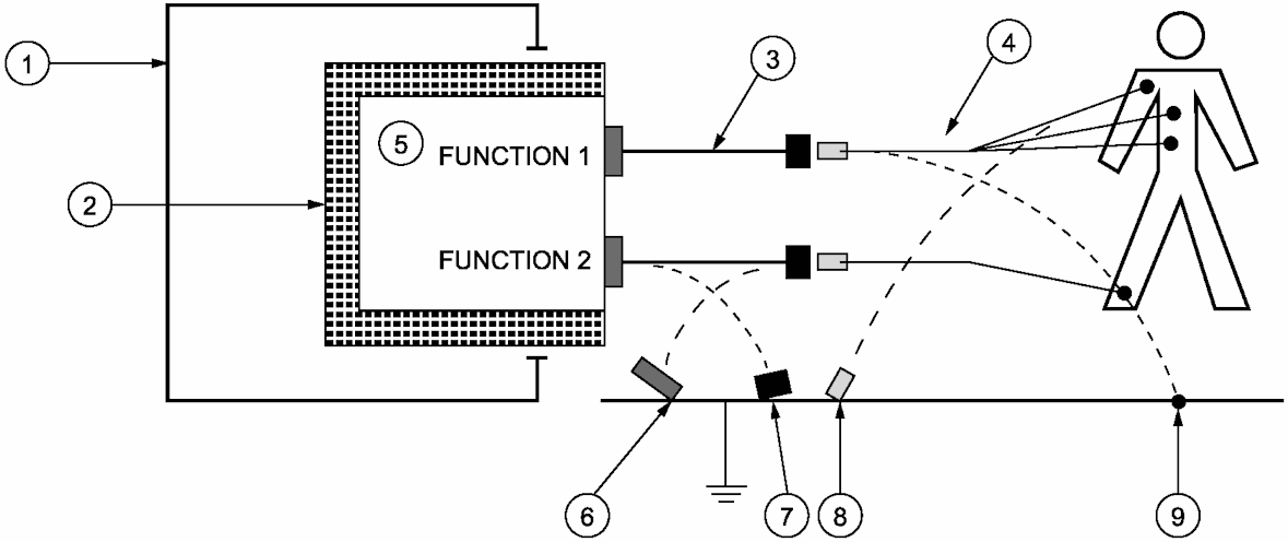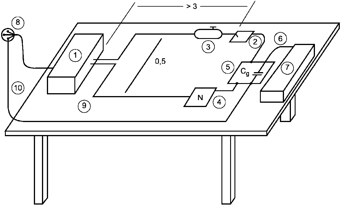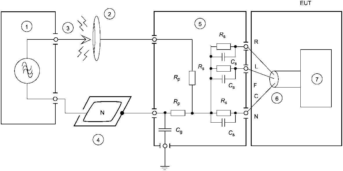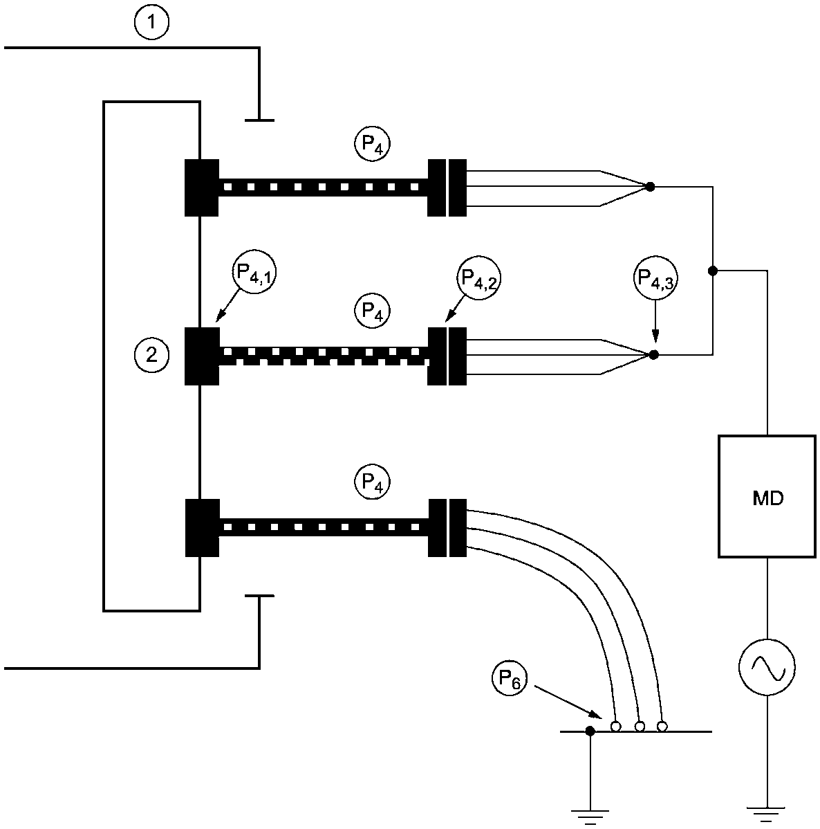 рисунке 202.103. Емкостной связи типа HF функциональное заземление может привести ME ОБОРУДОВАНИЕ быть не в состоянии восстановиться в течение указанного времени. По этой причине нет необходимости для выполнения этого теста в дифференциальном режиме ВЧ напряжения.
