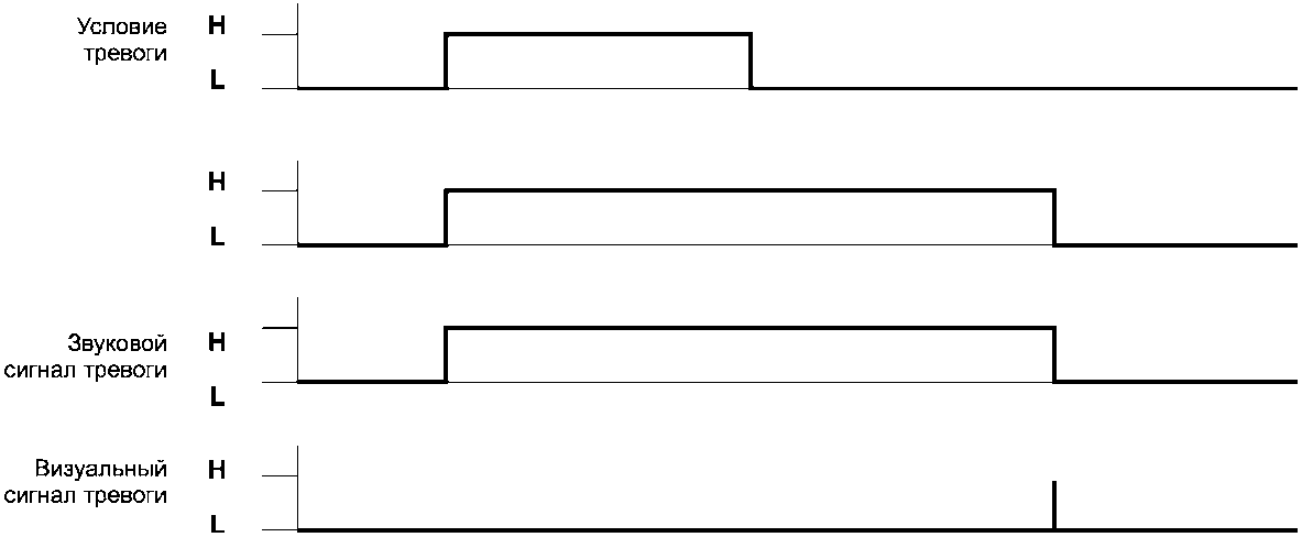 Иллюстрация LATCHING ALARM сигналов с ALARM RESET (см.