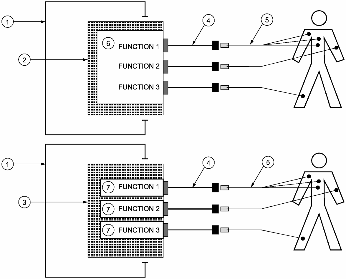 МНОГОПАРАМЕТРИЧЕСКОЕ ОБОРУДОВАНИЕ типа BF мониторинга пациентов: соединение между одной функцией и остальными отдельными функциями той же ЧАСТИ.