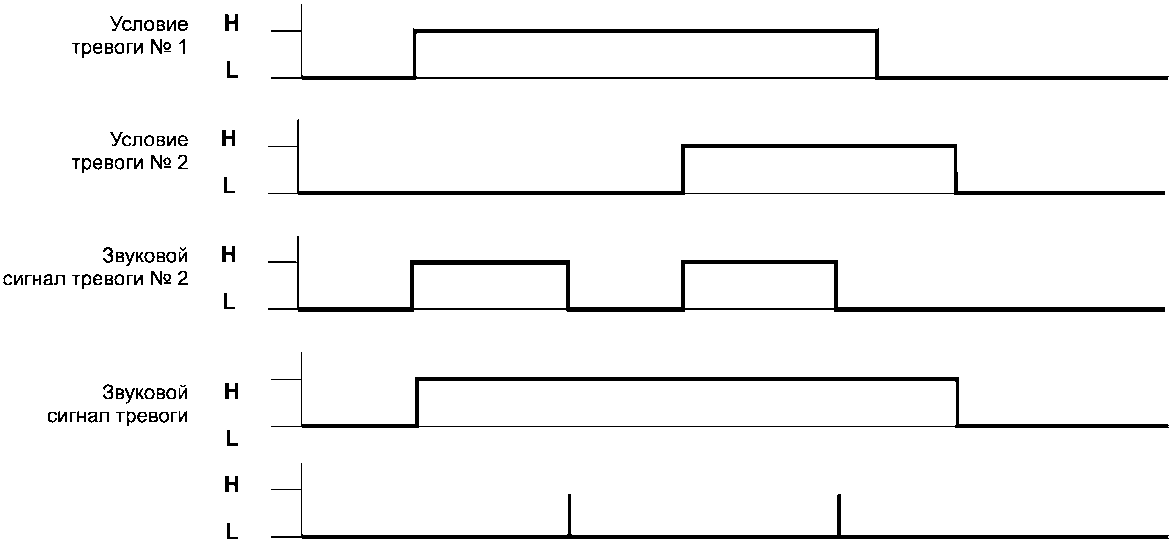рисунок BB.1), как указано в 6.10 МЭК 60601-1-8: без взаимодействия с оператором звуковые и визуальные сигналы тревоги указывают, что аварийное состояние существует. Как только сигнал исчезнет, звуковые сигналы и визуальная сигнализация прекращаются автоматически без участия оператора взаимодействия.