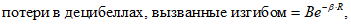В случае фиксированного значения длины волны и для ограниченных областей вокруг определенного значения радиуса (например, 15 или 30 мм для волокон категории B1) зависимость величины потерь от радиуса изгиба можно представить следующей формулой: