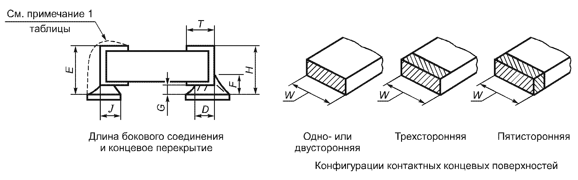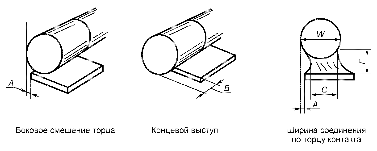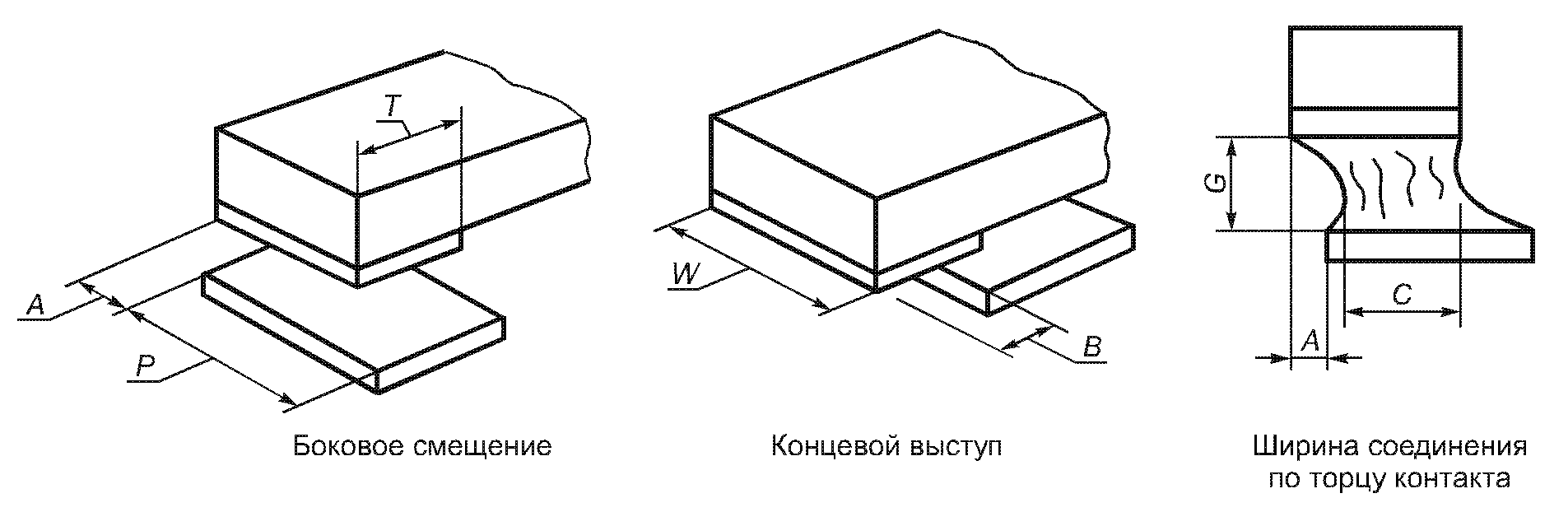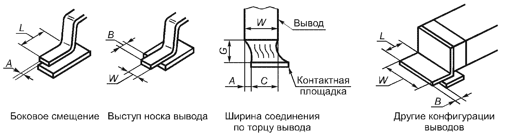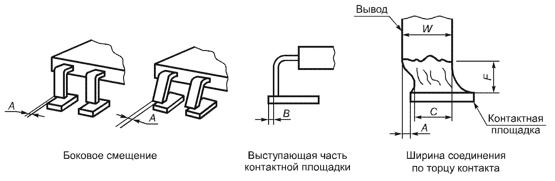 Минимальная ширина соеди- нения по торцу вывода | C | 1/2 W | 1/2 W | W |