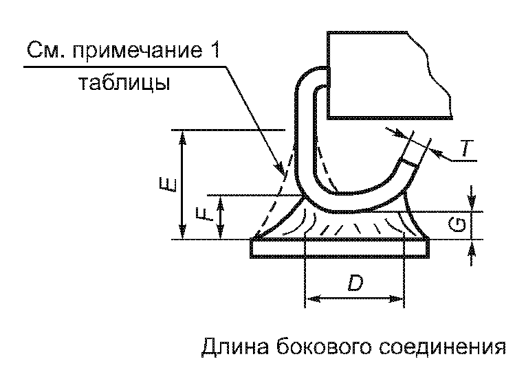Допускается, чтобы круглые или расплющенные выводы выходили за пределы контактной площадки не более чем на половину начального диаметра вывода. Допускается, чтобы плоские или гибкие выводы выходили за пределы контактной площадки не более чем на две толщины вывода или 0,5 мм (что менее). Поднятый вверх или опущенный вниз торец плоского или круглого вывода допускается при условии, что расстояние между выводами и оконечным соединением не превышает пределов 2T или 1/2 D соответственно.