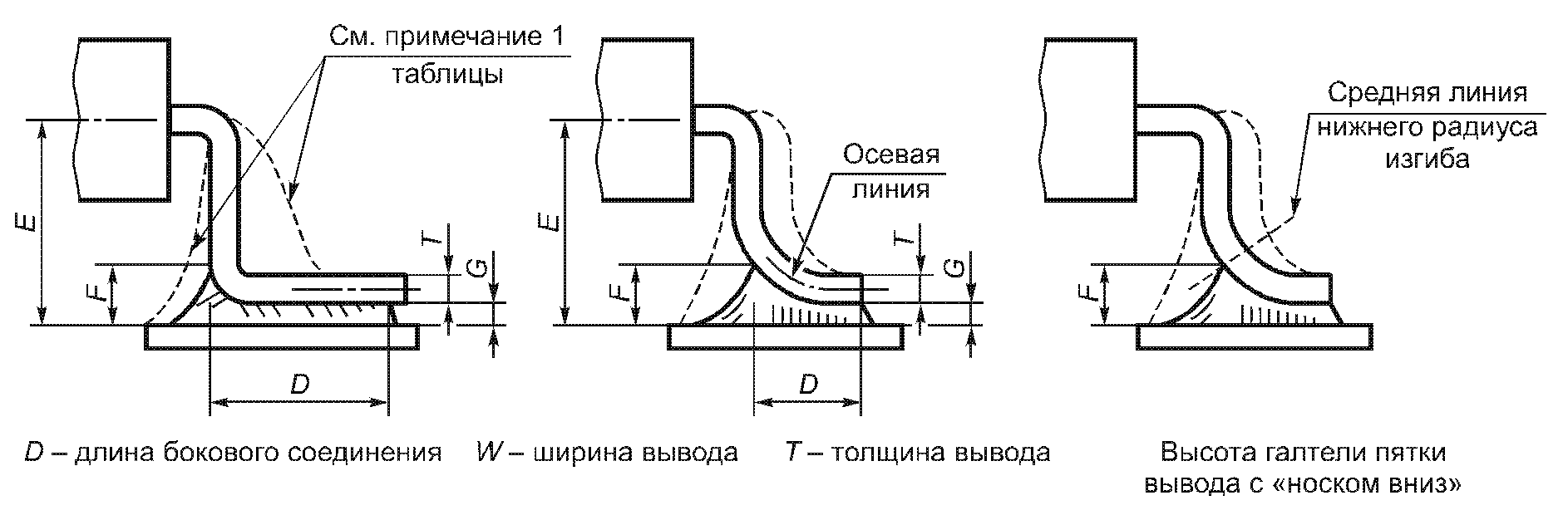 Максимальная высота галтели пятки вывода | E | | | G + T + 1 |